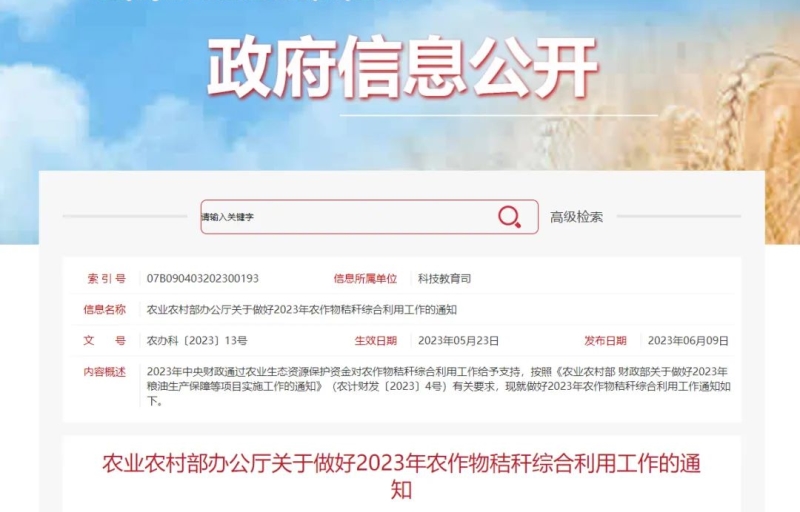 政策|農(nóng)業(yè)農(nóng)村部辦公廳關(guān)于做好2023年農(nóng)作物秸稈綜合利用工作的通知
