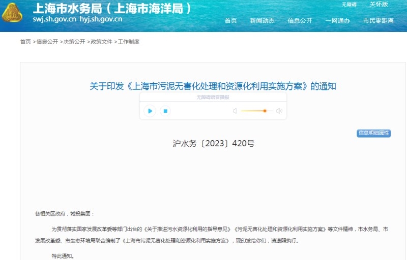 上海市發(fā)布《污泥無害化處理和資源化利用實施方案》