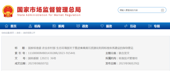 三部委聯合印發《關于推進畜禽糞污資源化利用標準體系建設的指導意見》!