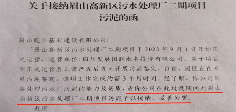 眉山高新技術產業(yè)園區(qū)管委會把關不嚴,明知乾豐公司不具備工業(yè)污泥處置資質和技術能力,在園區(qū)工業(yè)污泥未開展危險廢物鑒別的情況下,發(fā)函要求該公司接收園區(qū)工業(yè)污泥并進行處置。